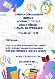- 30.04.26 avatud uste päev 2026/2027. õa X klassi astujatele.