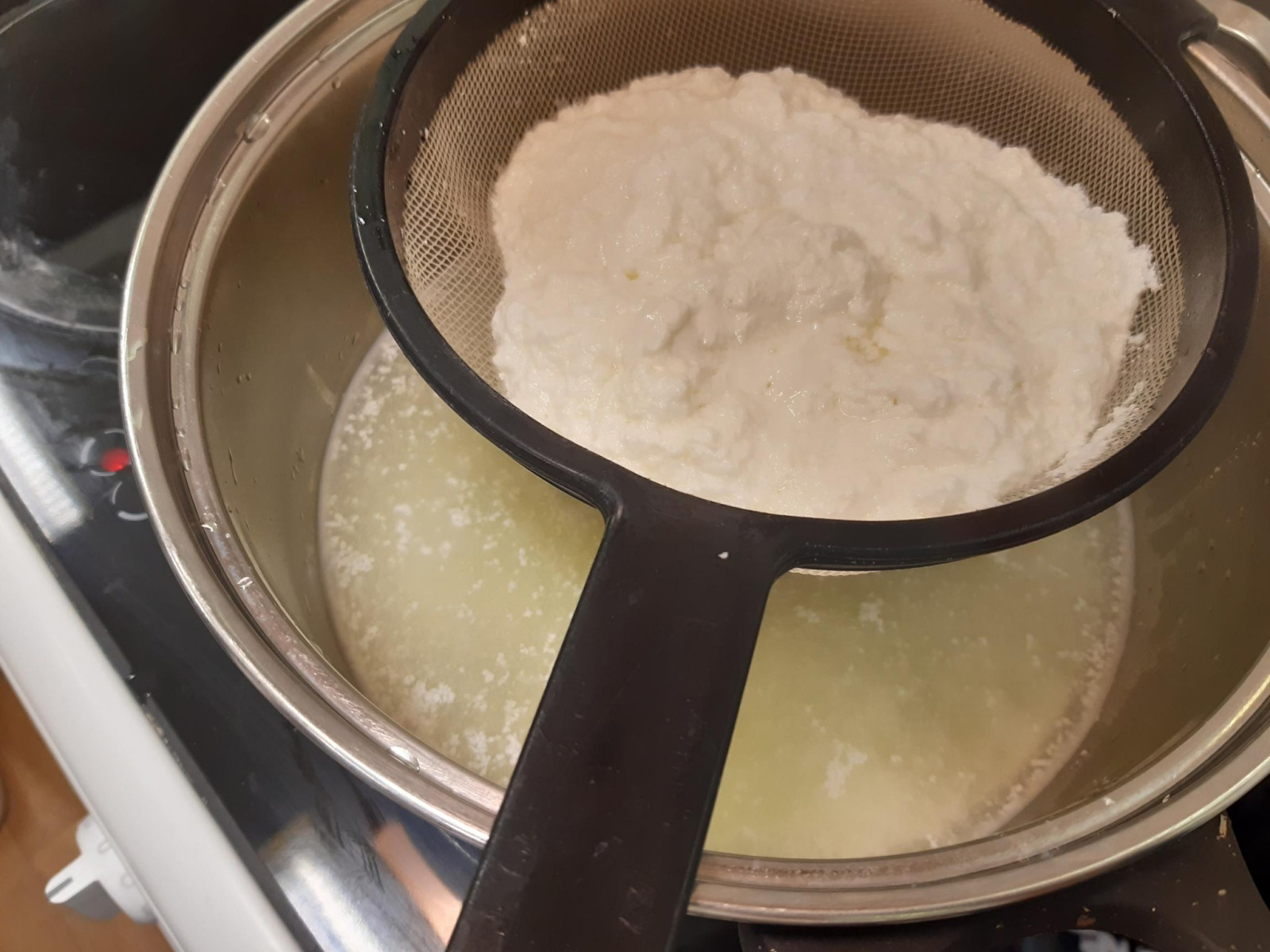 Valmis ise tehtud kartulitärklis ja maitsev kohupiim. Saadi teada uute sõnade kalgendumine ja vadak tähendus. Vt fotot, kus sõelal on kalgendunud hapupiim e. valmiv kohupiim ja potis on ülejääk ehk vadak.