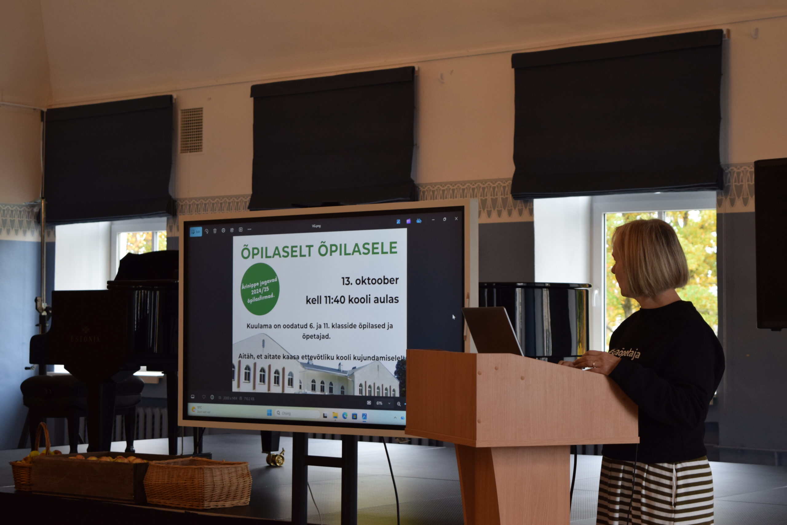 13. oktoobril toimus aulas õpisündmus “Õpilaselt õpilasele”, kus eelmise aasta õpilasfirmad rääkisid oma kogemustest 6. ja 11. klasside õpilastele.