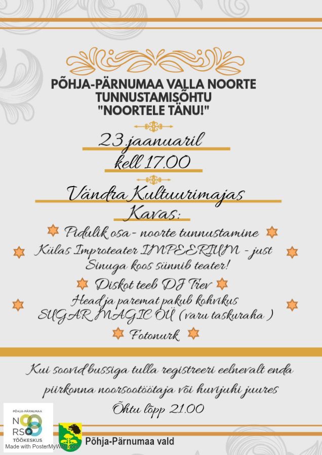 Põhja- Pärnumaa valla noorte tunnustamisõhtu “Noortele tänu!”