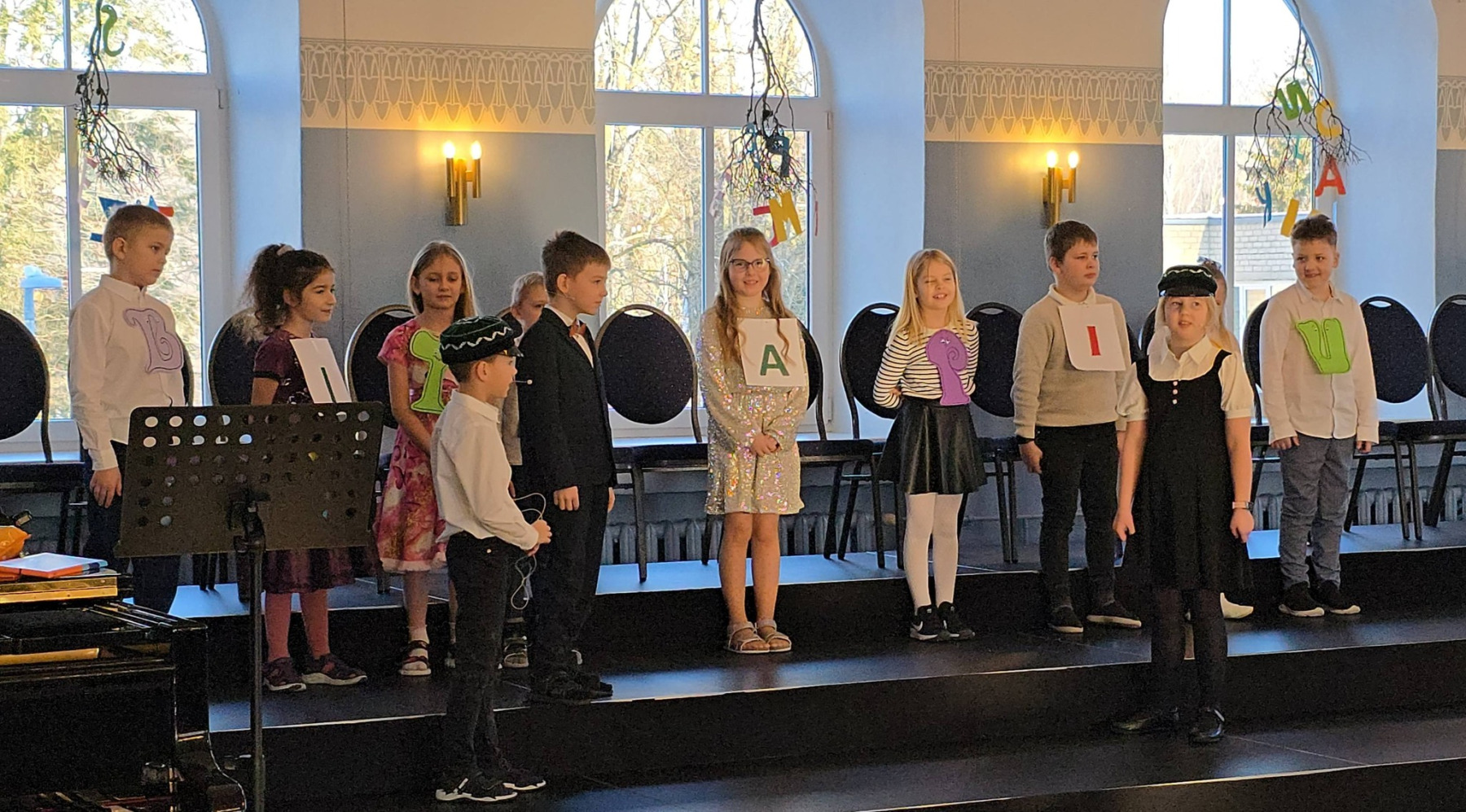 Õpilased esinesid laulude ning luuletustega, lühinäidendis otsiti kadunud A-tähte. Esines mudilaskoor, abiturientide juhendamisel ja liikumismängu “Kui sul tuju hea” abiga said kõik külalised tuju heaks ning näod naerule.