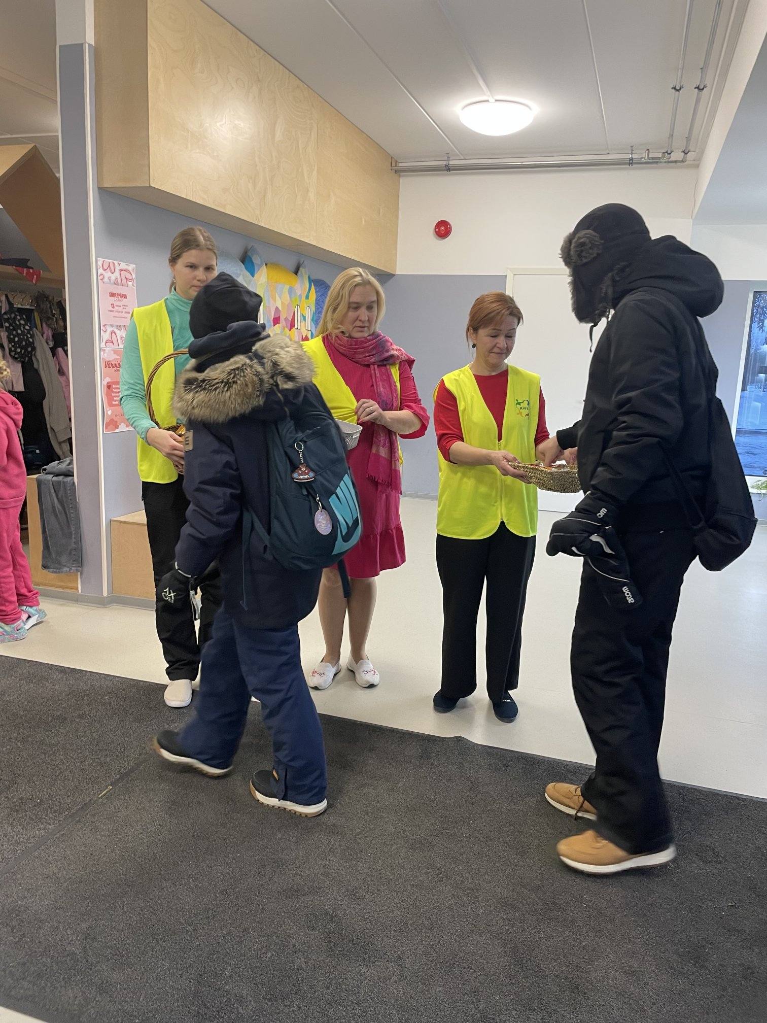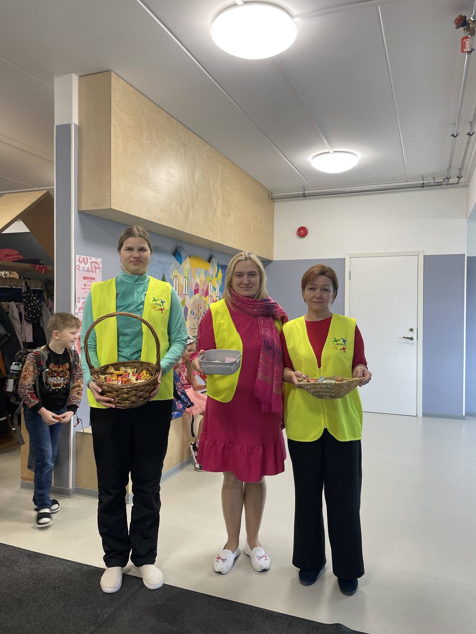 Sõbrapäeva tuleku puhul 13/02/2026 Tiina Sikk Täna hommikul võtsid koolimaja uksel koolipere vastu KiVa-vestides KiVa tiimi liikmed. Pakuti saabuva sõbrapäeva puhul kommi ja ilusa sõnumiga kleepsu