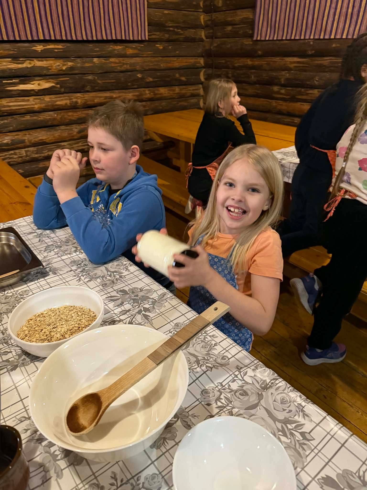 Oli sisukas, meeleolukas, aktiivne päev. Õppisime juurde palju uut. Saime teadmisi, kuidas vanasti talus elati, mida tehti veskis ning teraviljad said päris selgeks. Tegime ise võid ja valmistasime kaerahelbeküpsiseid. Kõige toredam oli ringkäik laudas ja loomulikult sai pai iga loom. Mõni julgem sai proovida ka sõnniku loopimist. Vaatasime erinevaid vanu põllutööriistu ning Rihhard jagas oma teadmisi masinatest ja põllutöödest. Kokad olid valmistanud mega maitsva ühepajatoidu ja muidugi omatehtud küpsised viisid keele alla!