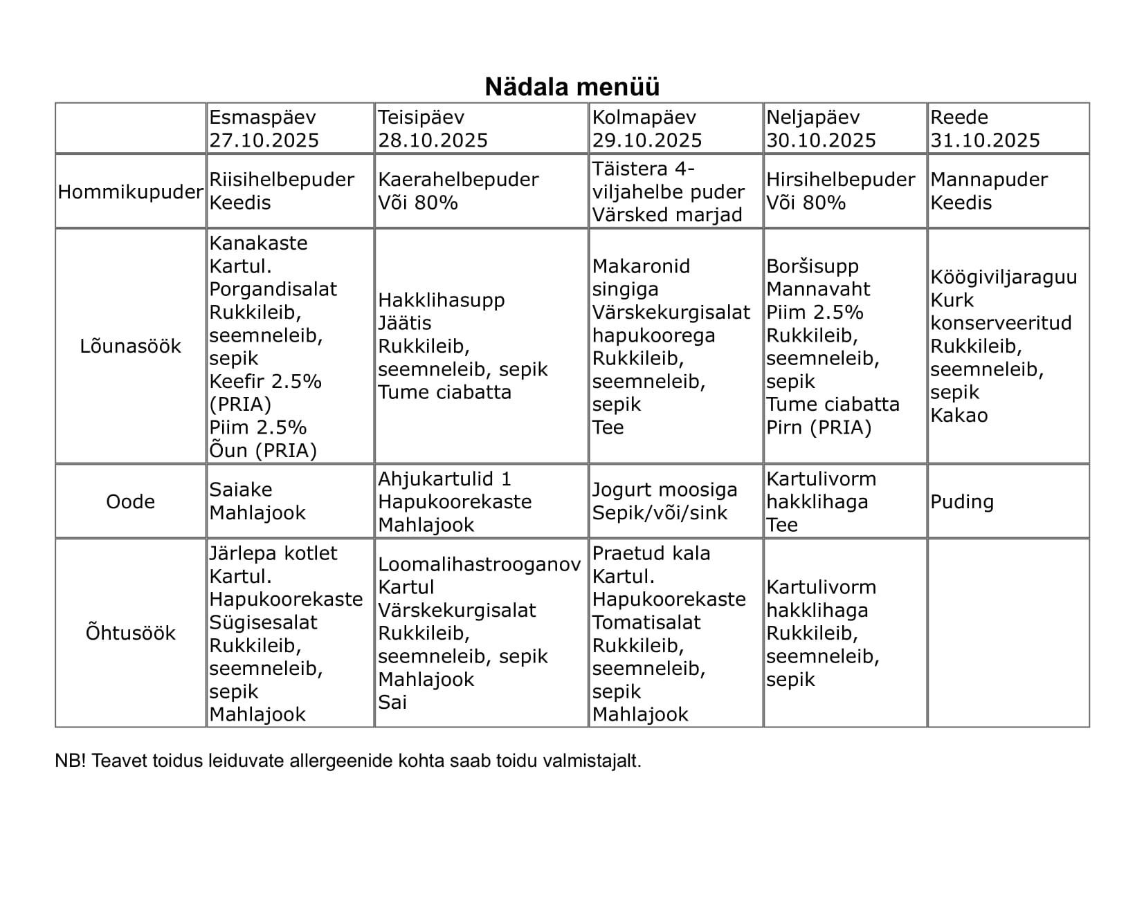- Hommikupuder õpilasele tasuta, portsion (puder moosiga ja tee) hommikul alates kella 08:00 kuni 08:30.